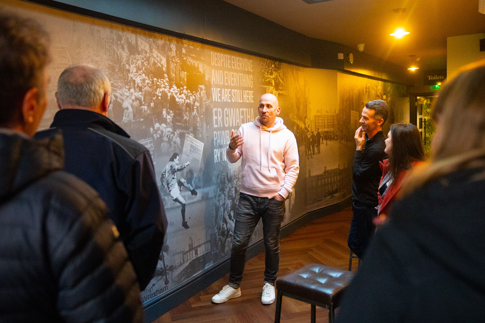 From there, the tour moves on to St Giles Parish Church, the largest medieval parish church in Wales, where you’ll discover centuries of history and admire its stunning architecture. Next, you’ll visit Vault 33, Wrexham’s newest upscale cocktail bar, owned by former Wrexham AFC player Neil Roberts, where you can sample a specialty cocktail and enjoy the bar’s beautiful Wrexham-themed mural and snug seating.